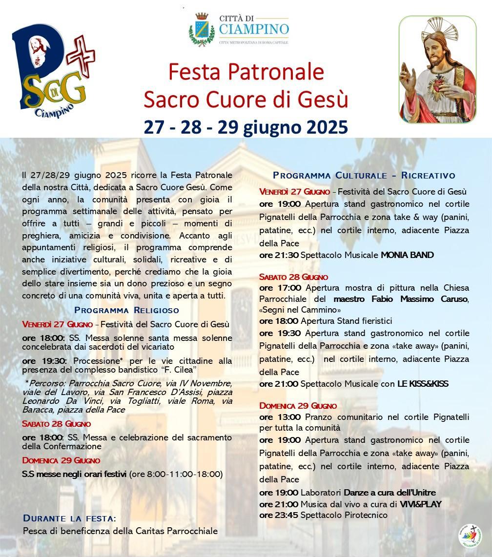 Ciampino festeggia il suo Santo Patrono, il Sacro Cuore di Gesù, in calendario il prossimo 29 giugno.