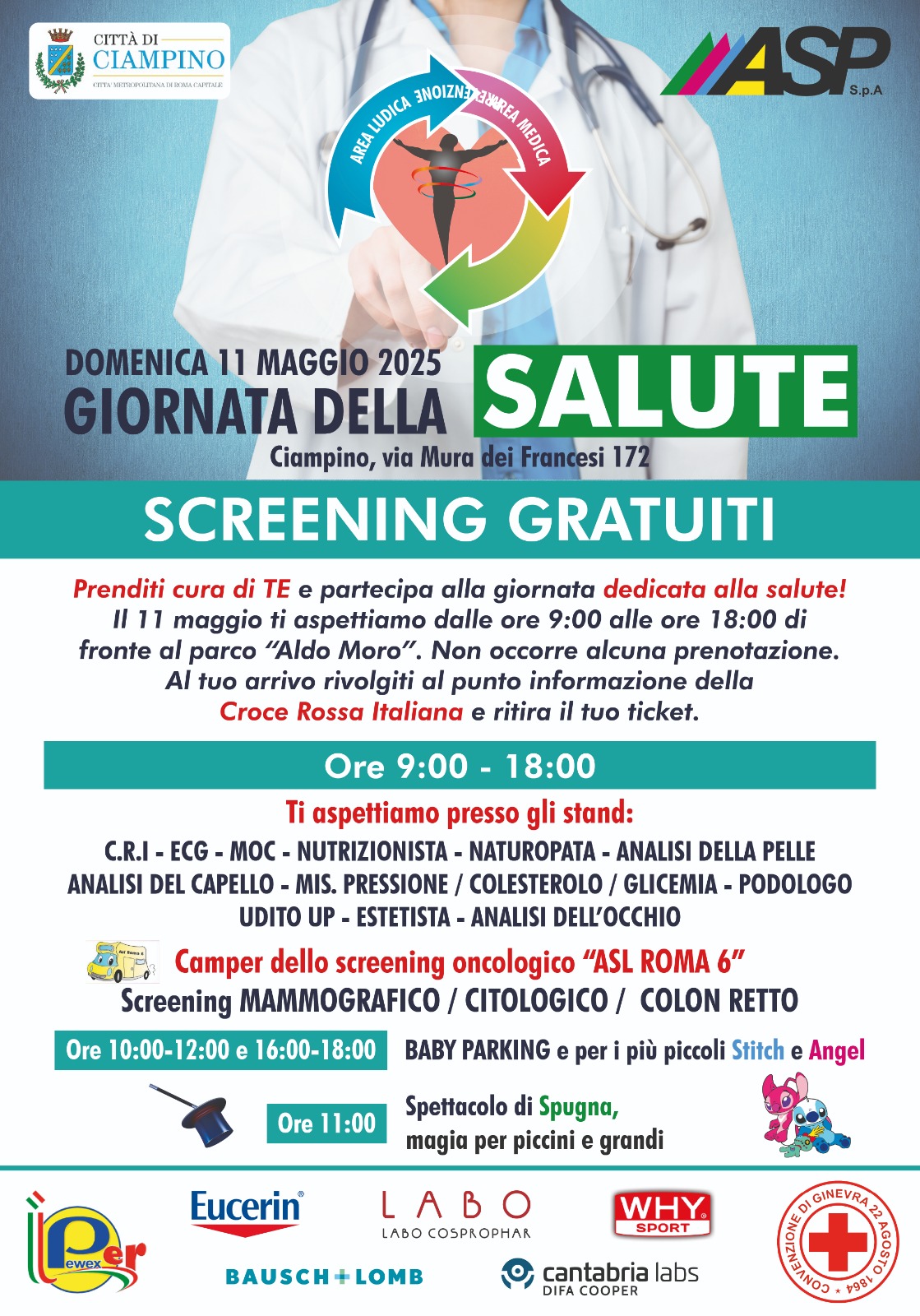 Domenica 11 maggio, dalle ore 9:00 alle ore 18:00 , nell’area verde all’interno del Parco “Aldo Moro”, si svolgerà la “Giornata della Salute e della Prevenzione 2025” organizzata da ASP S.p.a. e patrocinata dall'Ente.