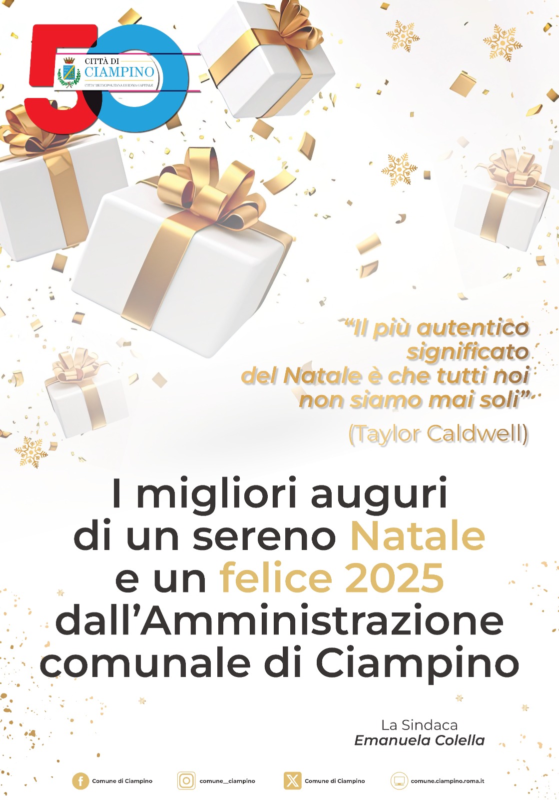 La Sindaca Emanuela Colella e l'Amministrazione comunale tutta augurano un sereno Natale e un felice anno nuovo!