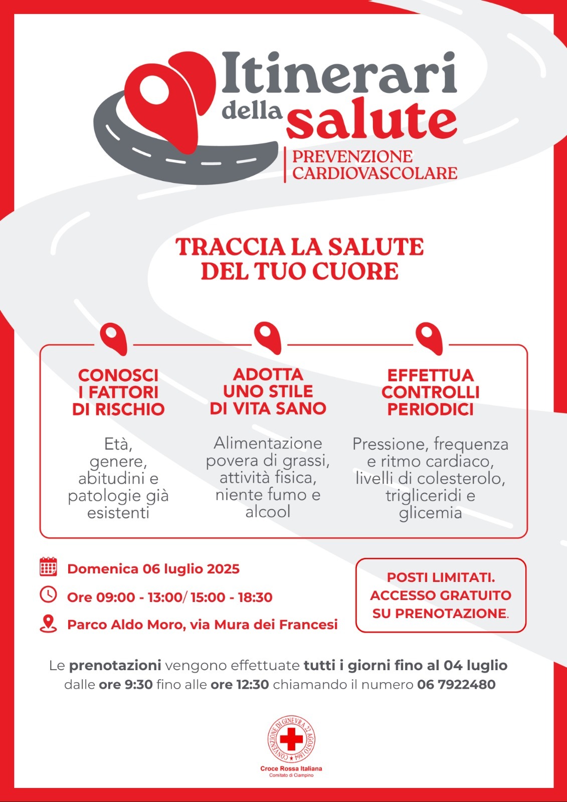L'evento organizzato dal Comitato di Ciampino OdV della Croce Rossa Italiana e patrocinato dall'Ente, prevede controlli gratuiti su prenotazione per monitorare la salute del tuo cuore.