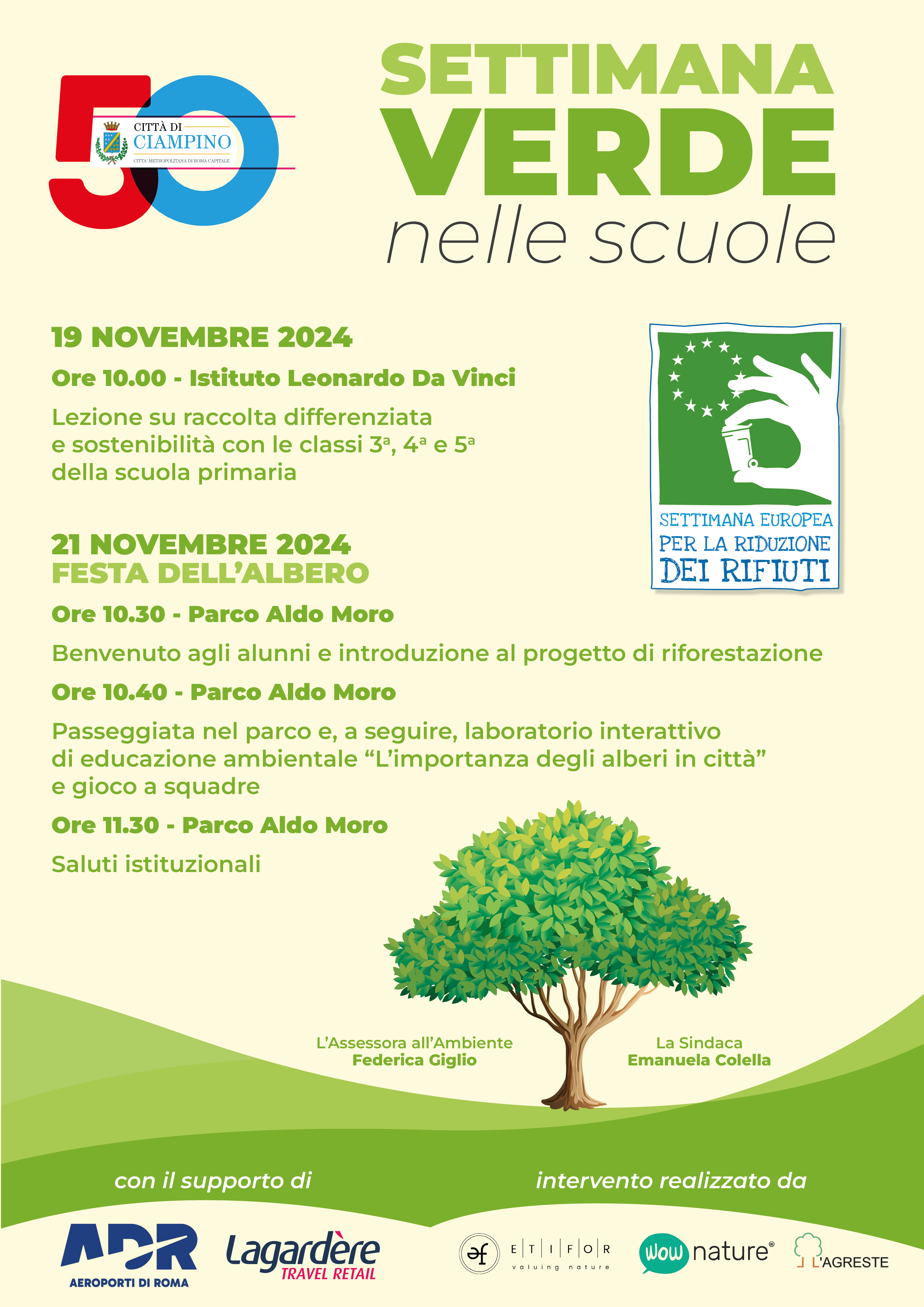 “Desidero innanzitutto ringraziare i partner che ci hanno supportato negli interventi realizzati e nelle iniziative che andiamo a proporre agli studenti - spiega l’Assessora all’Ambiente Federica Giglio. - ADR, Legardere, Etifor, Wow Nature e L’Agreste sono stati fondamentali per gli interventi di messa a dimora di circa 250 piante nel Parco Aldo Moro; la collaborazione con Ancitel e Ambi.En.Te. porta a nuove attività di educazione e formazione ambientale nelle scuole. Obiettivo finale è quello di sensibilizzare l’intera comunità sull’impatto che ogni singolo gesto può avere in chiave ambientale”.