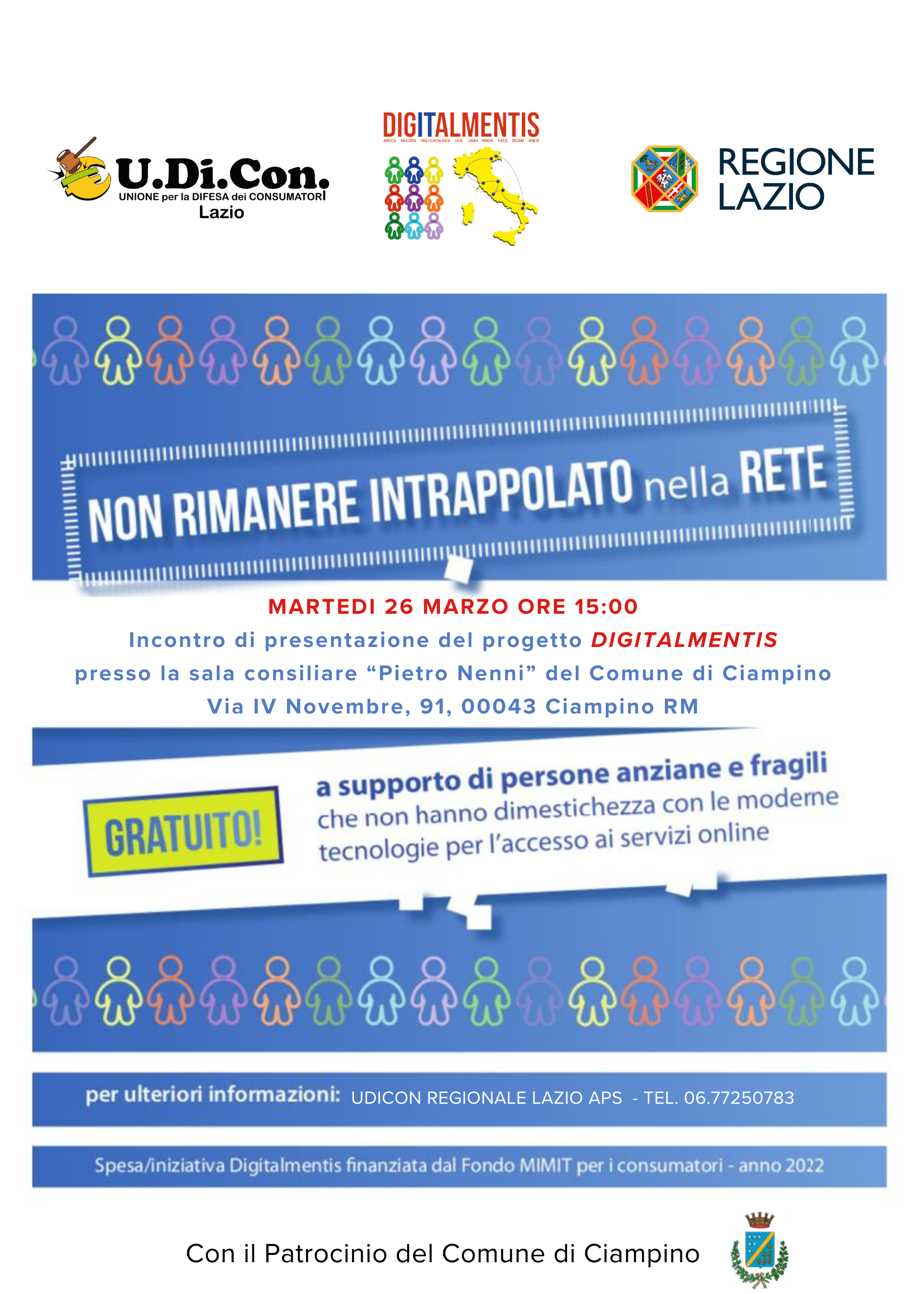 Finanziato con fondi statali trasferiti alle Regioni tramite il Ministero delle imprese e del Made in Italy, Digitalmentis vuole favorire l’uso autonomo, consapevole e responsabile delle nuove tecnologie a consumatori adulti, consentendo loro di aver accesso a servizi che sempre più spesso vengono forniti digitalmente dalla pubblica amministrazione e dai privati.