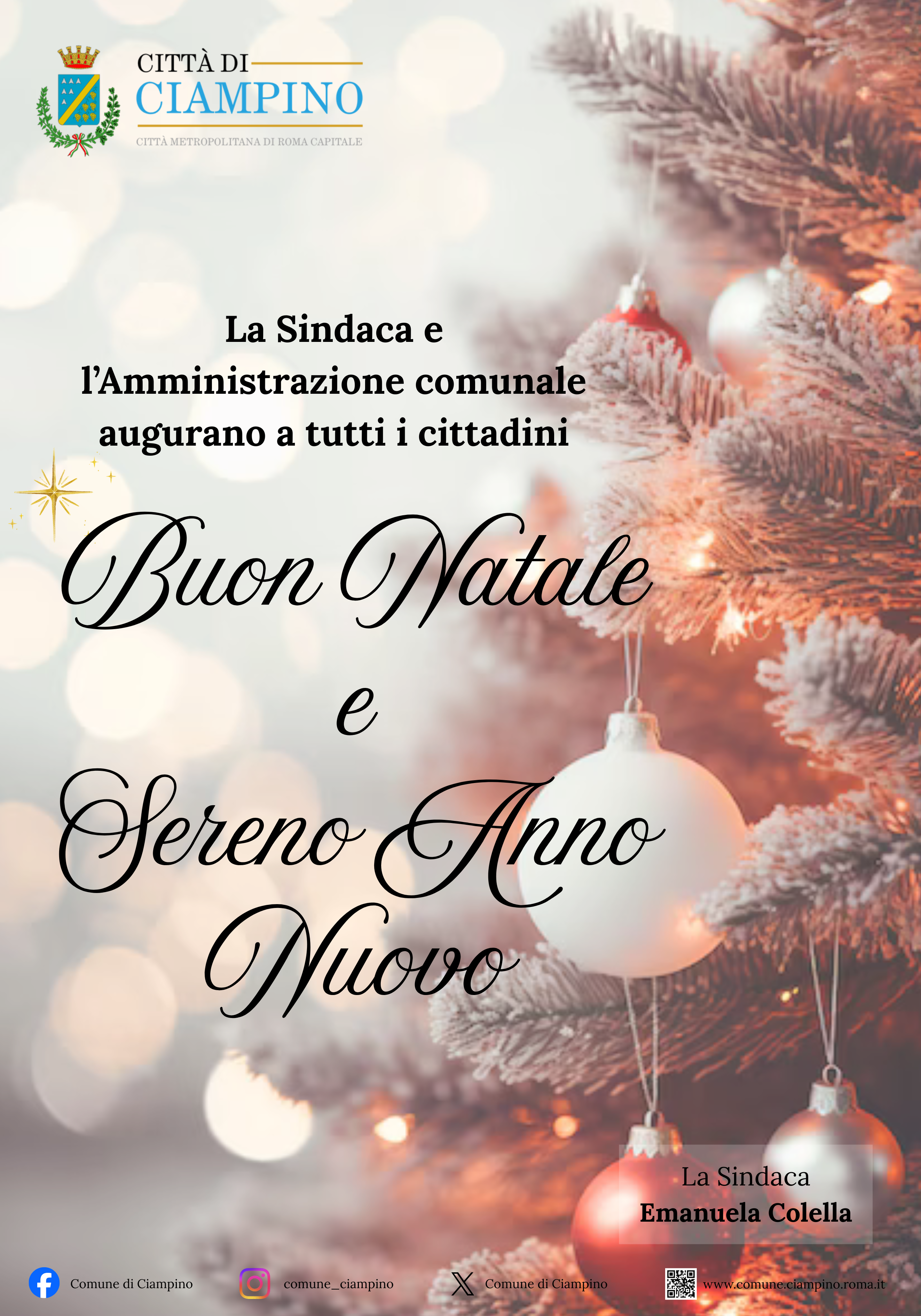 La Sindaca Emanuela Colella e l'Amministrazione comunale tutta augurano un sereno Natale e un felice anno nuovo!