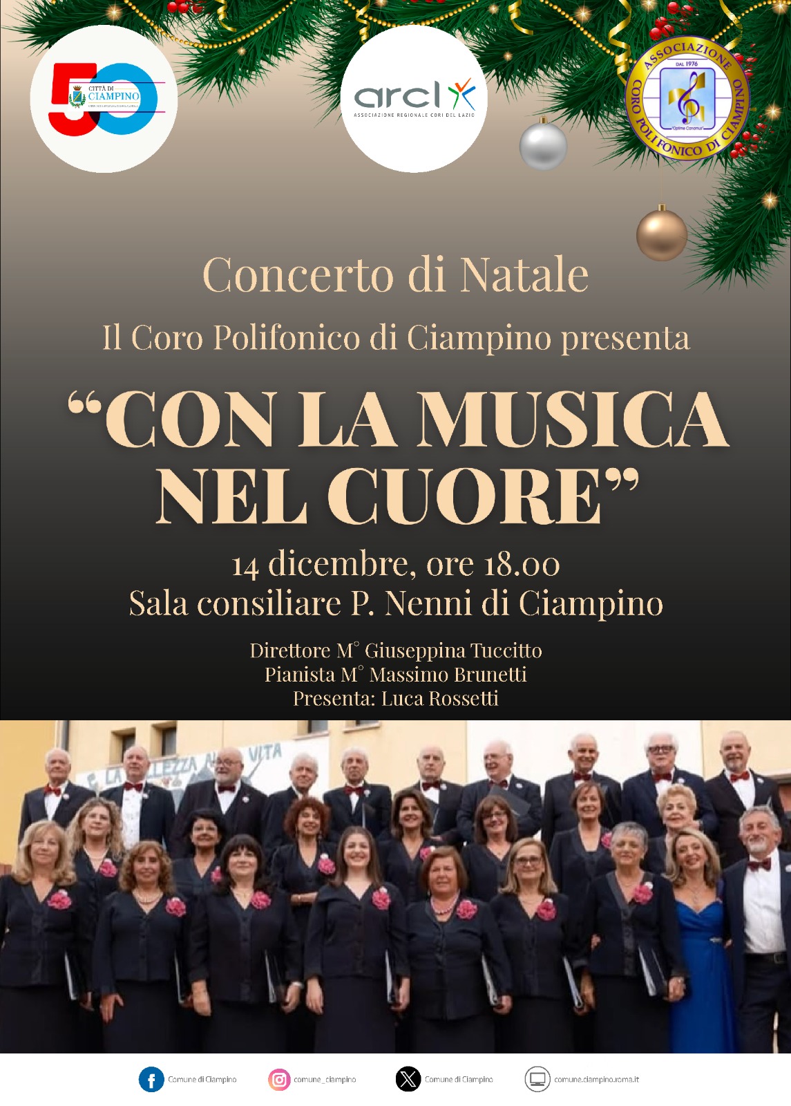 | 14 dicembre | Con la musica nel cuore, concerto Colo Polifonico Ciampino | Ore 18.00 Sala consiliare P. Nenni |