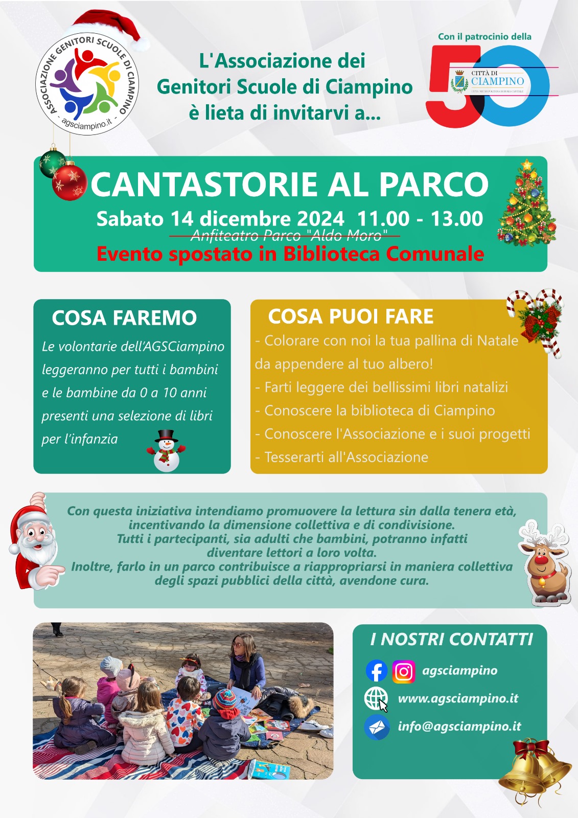 | 14 dicembre | Letture al Parco - a cura dell'associazione Genitori Scuole | Ore 10.00 Parco Aldo Moro EVENTO SPOSTATO IN BIBLIOTECA |